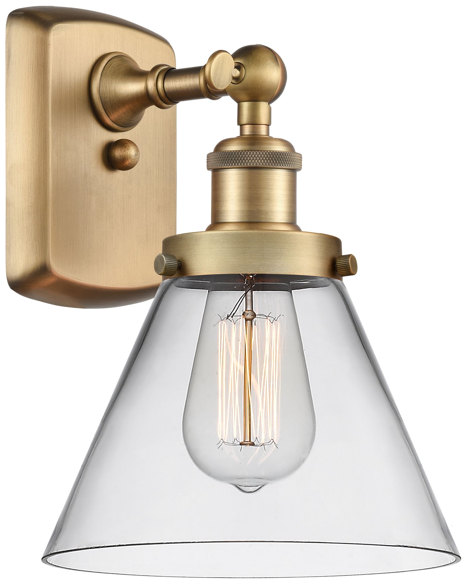 Ballston Urban Cone 13" High Brushed Brass Sconce w/ Clear Shade
