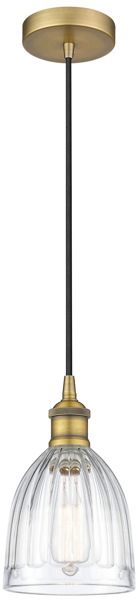 Edison Brookfield 6" Brushed Brass Cord Hung Mini Pendant w/ Clear Sha