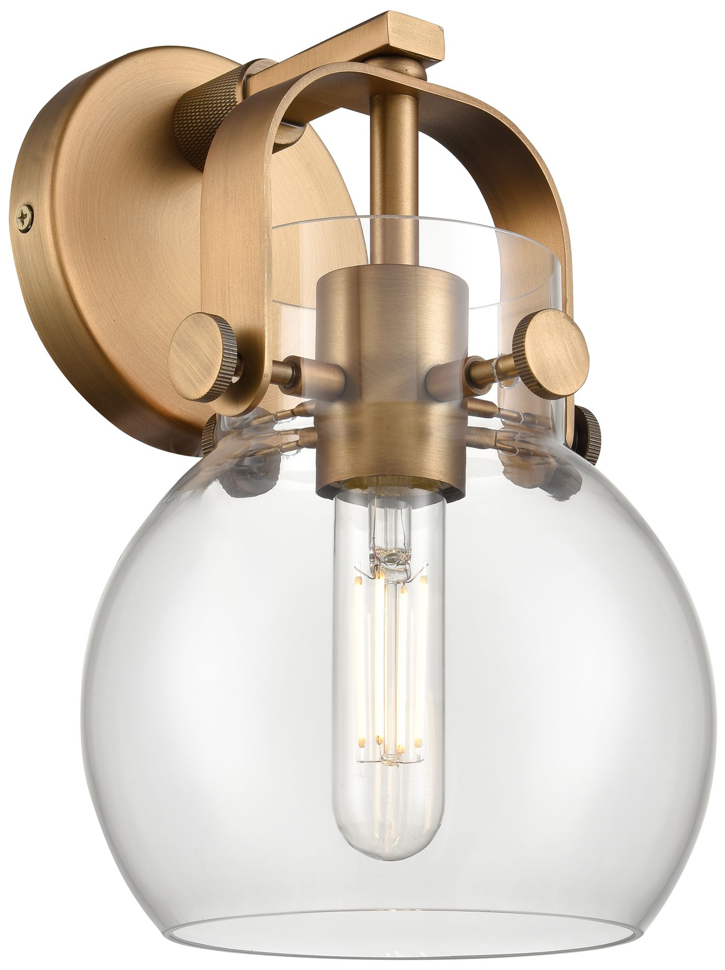 Pilaster II Sphere 9.75" High Brushed Brass Sconce With Clear Shade
