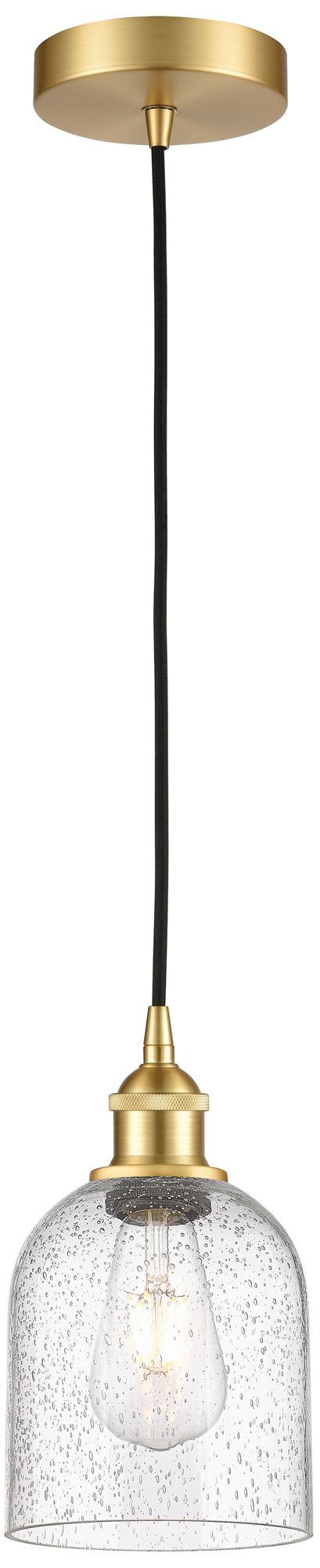 Edison Bella 5.5" Wide Satin Gold Cord Hung Mini Pendant With Seedy Sh