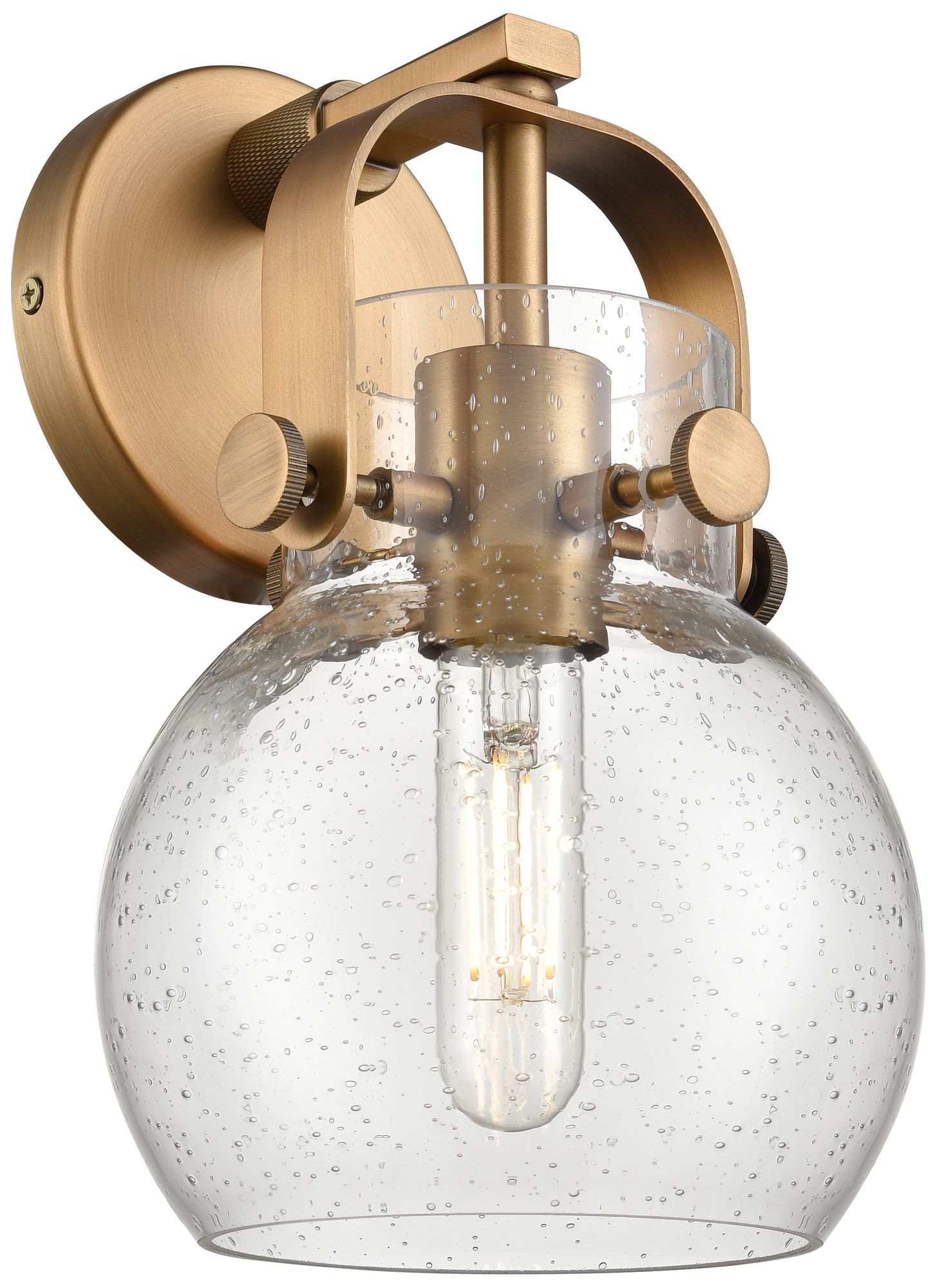 Pilaster II Sphere 9.75" High Brushed Brass Sconce With Seedy Shade