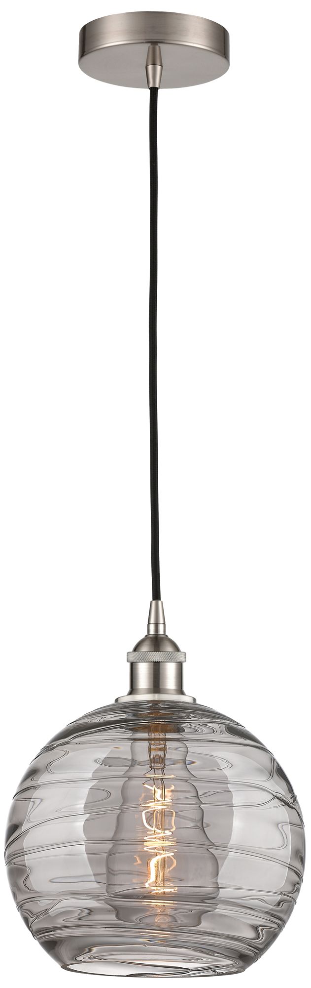 Edison Athens 10"W Satin Nickel Corded Mini Pendant w/ Smoke Swirl Sha