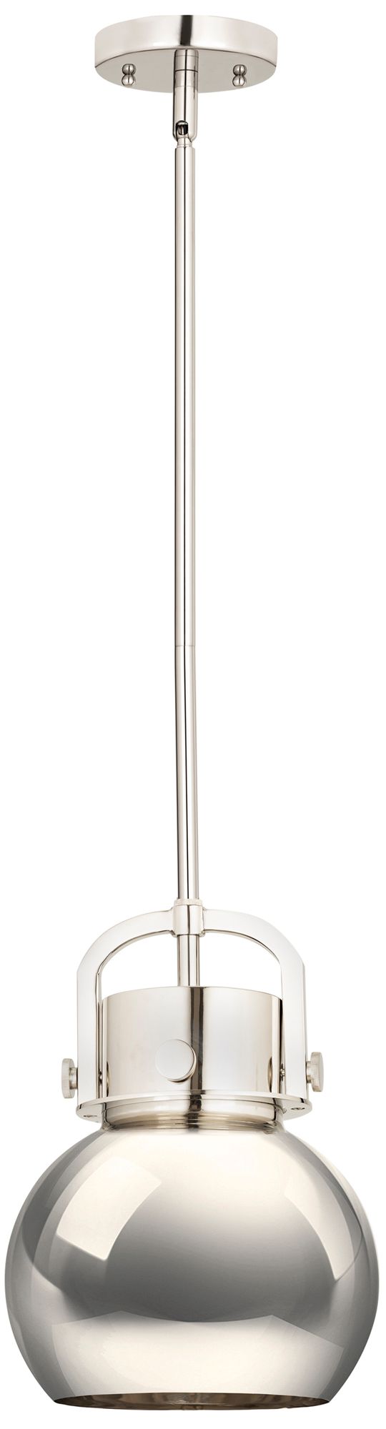 Newton Metal Sphere 8"W Polished Nickel Stemmed Pendant w/ Nickel Shad