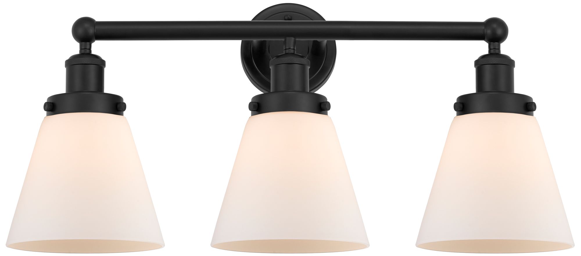 Edison Small Cone 25" 3-Light Matte Black Bath Light w/ Matte White Sh