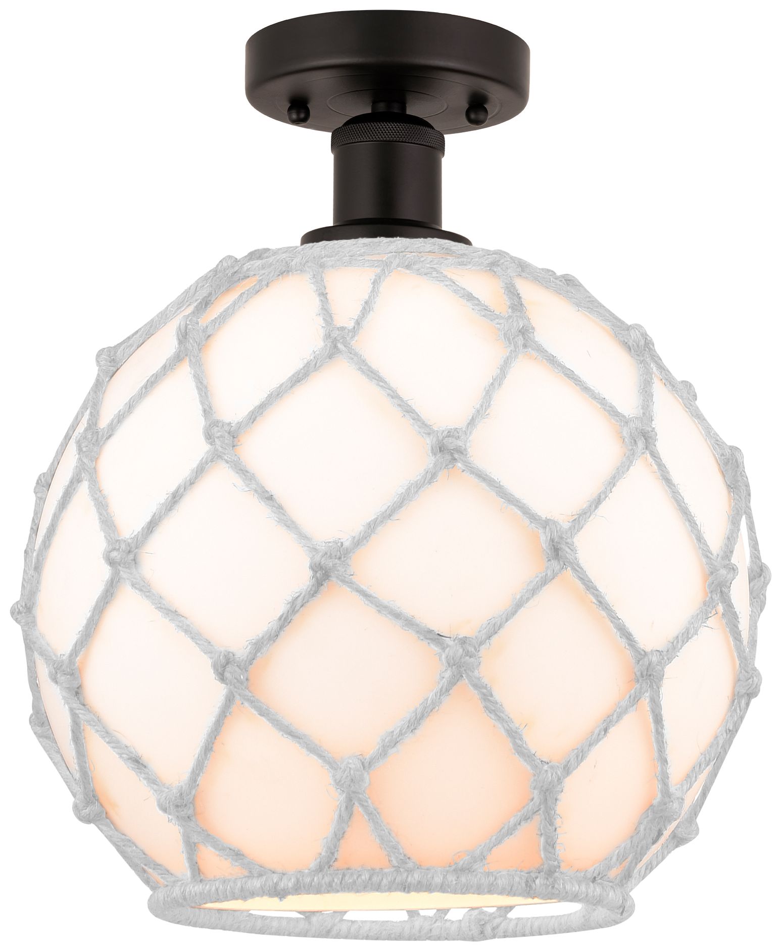 Edison Farmhouse 10" Bronze Semi Flush w/ White Rope Shade