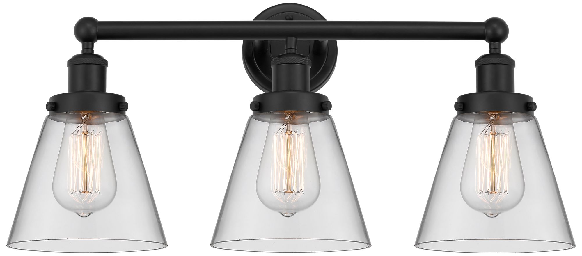 Edison Small Cone 25" 3-Light Matte Black Bath Light w/ Clear Shade