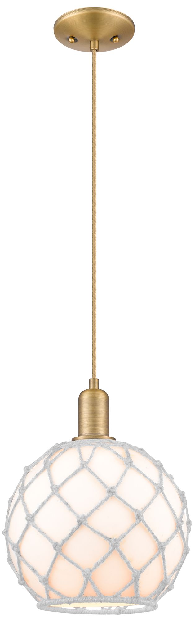 Arcadia Farmhouse Rope 10"W Brushed Brass Cord Pendant w/ White Shade