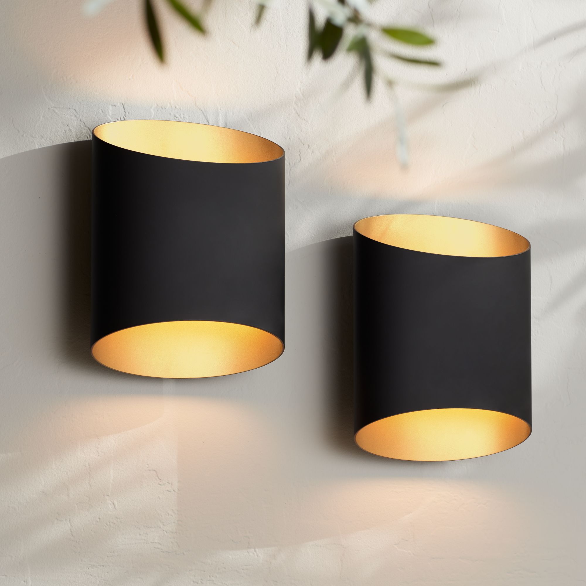 Possini Euro Everard 10"H Black Gold LED Outdoor Wall Light Set of 2