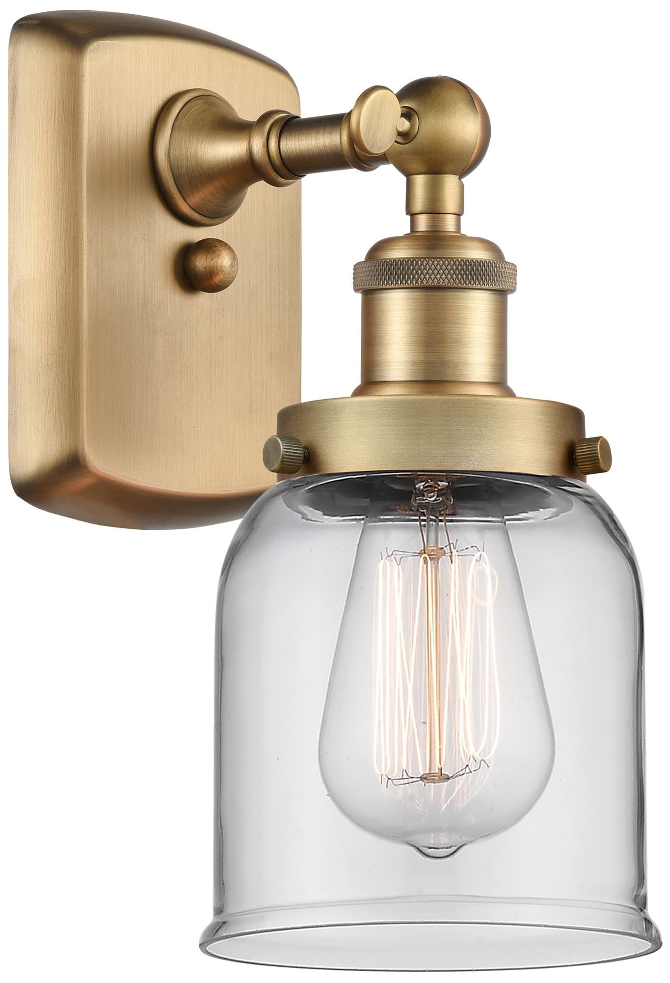Ballston Urban Bell 12" High Brushed Brass Sconce w/ Clear Shade
