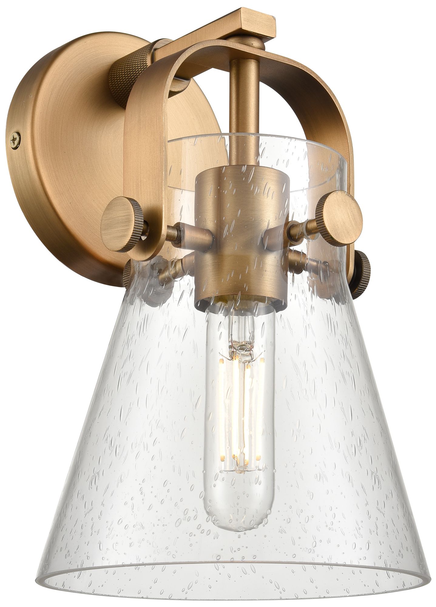 Pilaster II Cone 9.75" High Brushed Brass Sconce With Seedy Shade