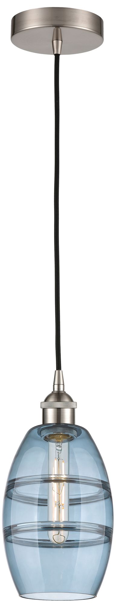 Edison Vaz 5.88"W Satin Nickel Corded Mini Pendant w/ Princess Blue Sh