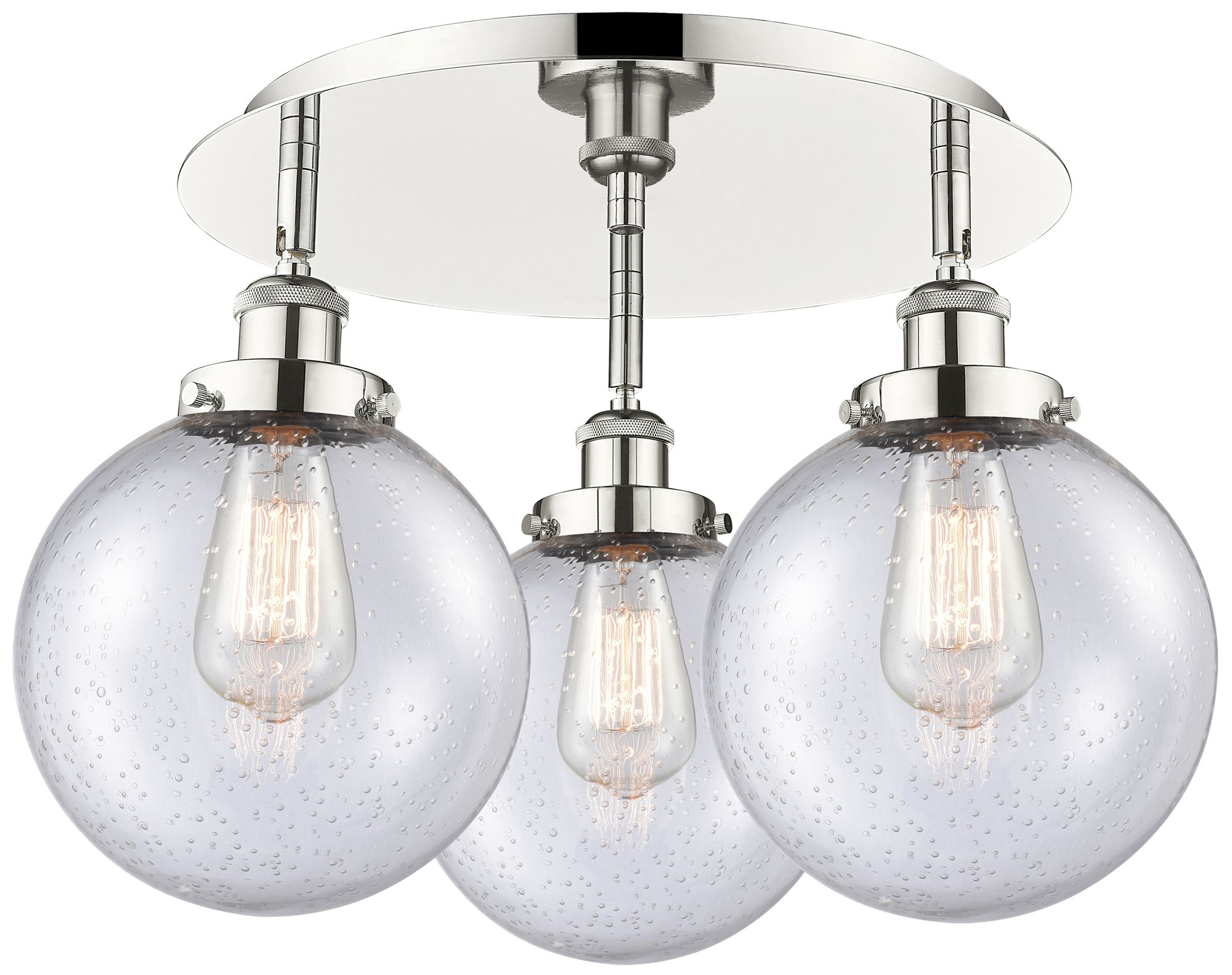 Canton 19.75"W 3 Light Polished Nickel Flush Mount With Seedy Glass Sh