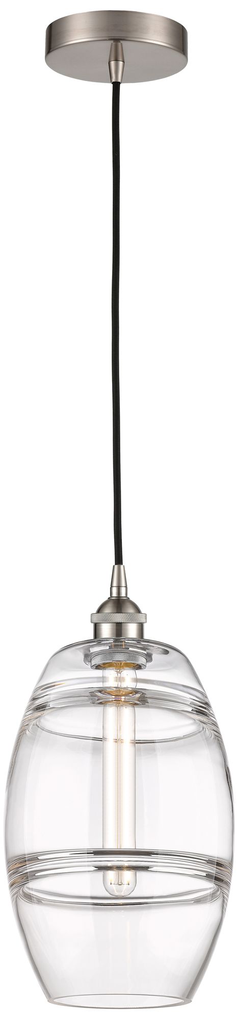 Edison Vaz 8" Wide Brushed Satin Nickel Corded Mini Pendant w/ Clear S