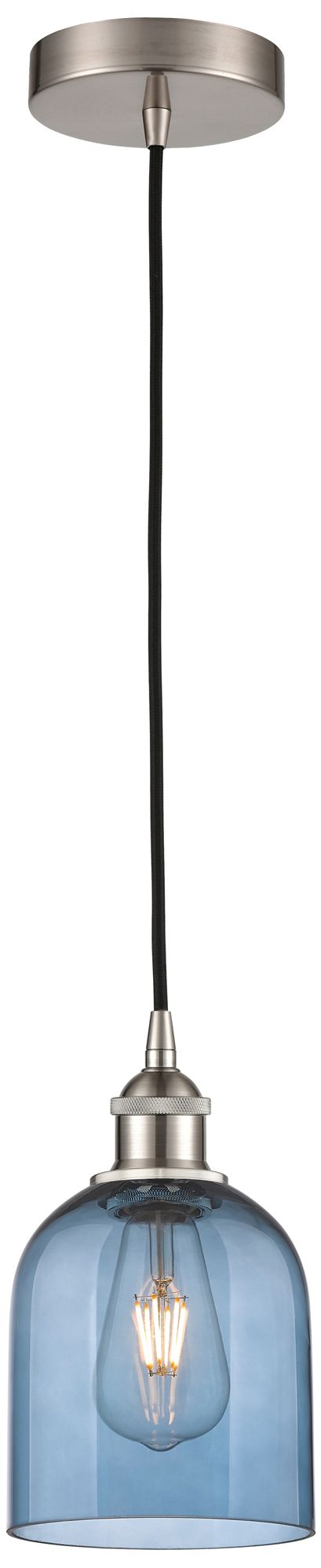Edison Bella 5.5"W Satin Nickel Corded Mini Pendant w/ Princess Blue S