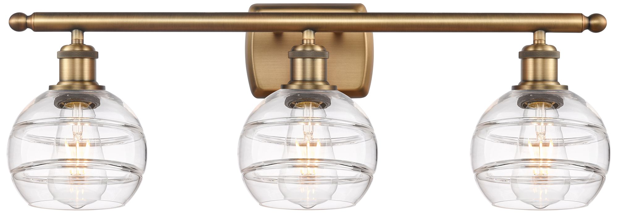 Ballston Rochester 26"W 3 Light Brushed Brass Bath Light w/ 6" Cl