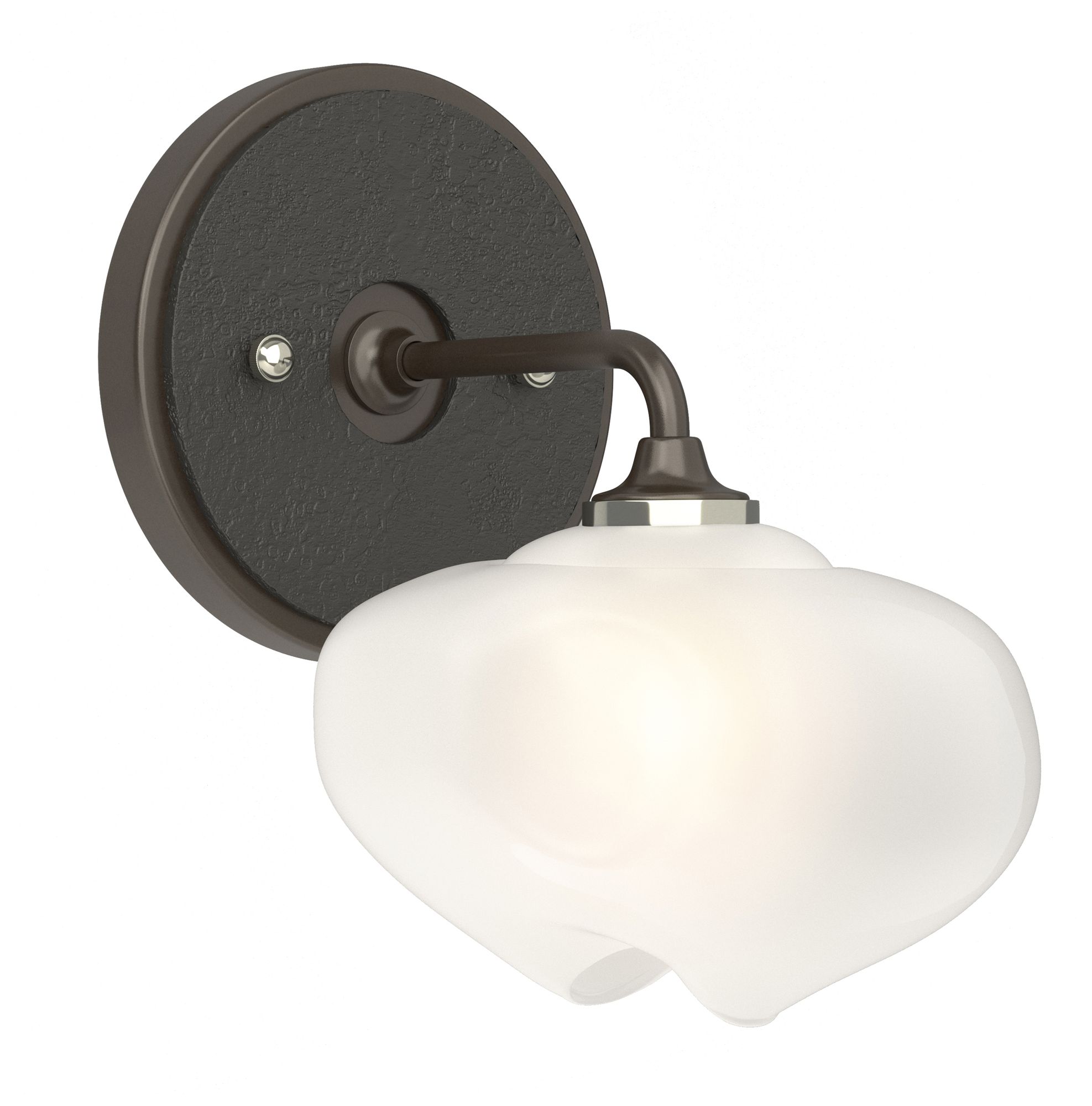 Ume 8.5"H Black Accented Curved Arm Bronze Bath Sconce w/ Frosted Shad