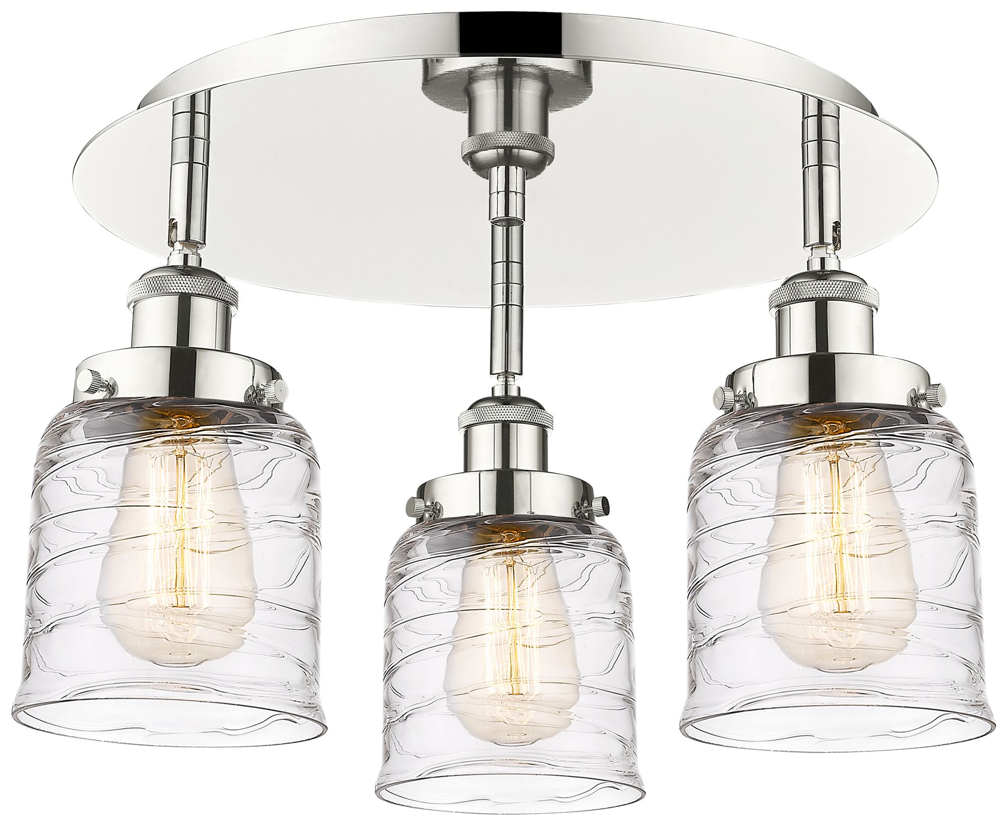 Bell 16.75"W 3 Light Polished Nickel Flush Mount w/ Clear Deco Swirl S