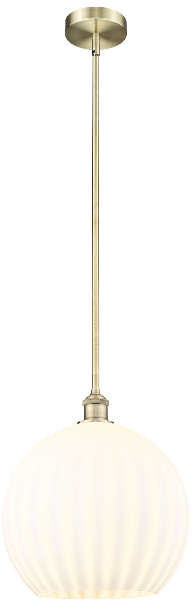 Edison 13.75" Wide Antique Brass Stem Hung Pendant w/ White Venetian S