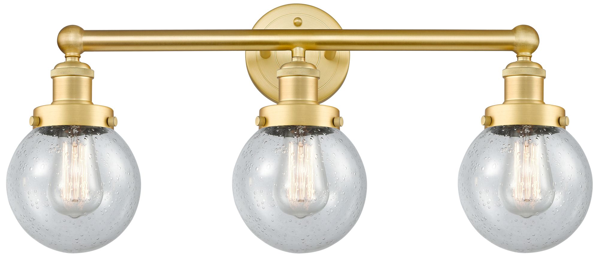 Small Edison Beacon 24.5"W 3 Light Satin Gold Bath Light With Seedy Sh