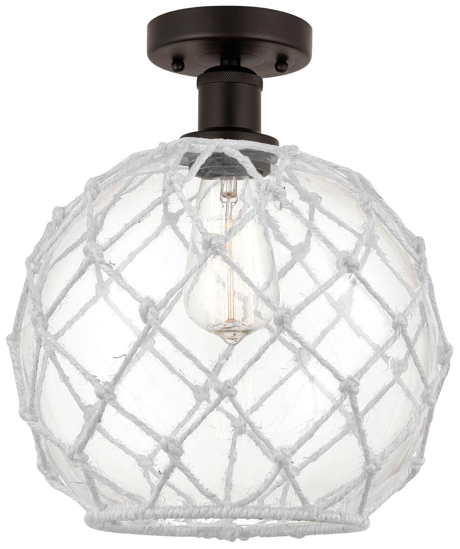 Edison Farmhouse 10" Bronze Semi Flush w/ Clear & White Rope Shade