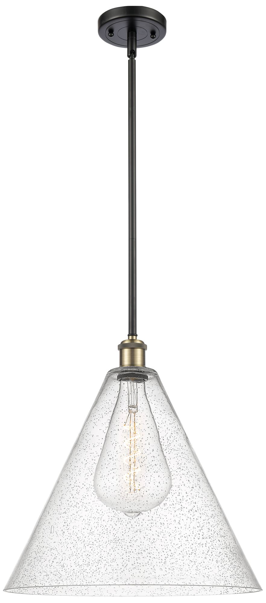 Berkshire 16" Black Antique Brass LED Pendant With Seedy Shade