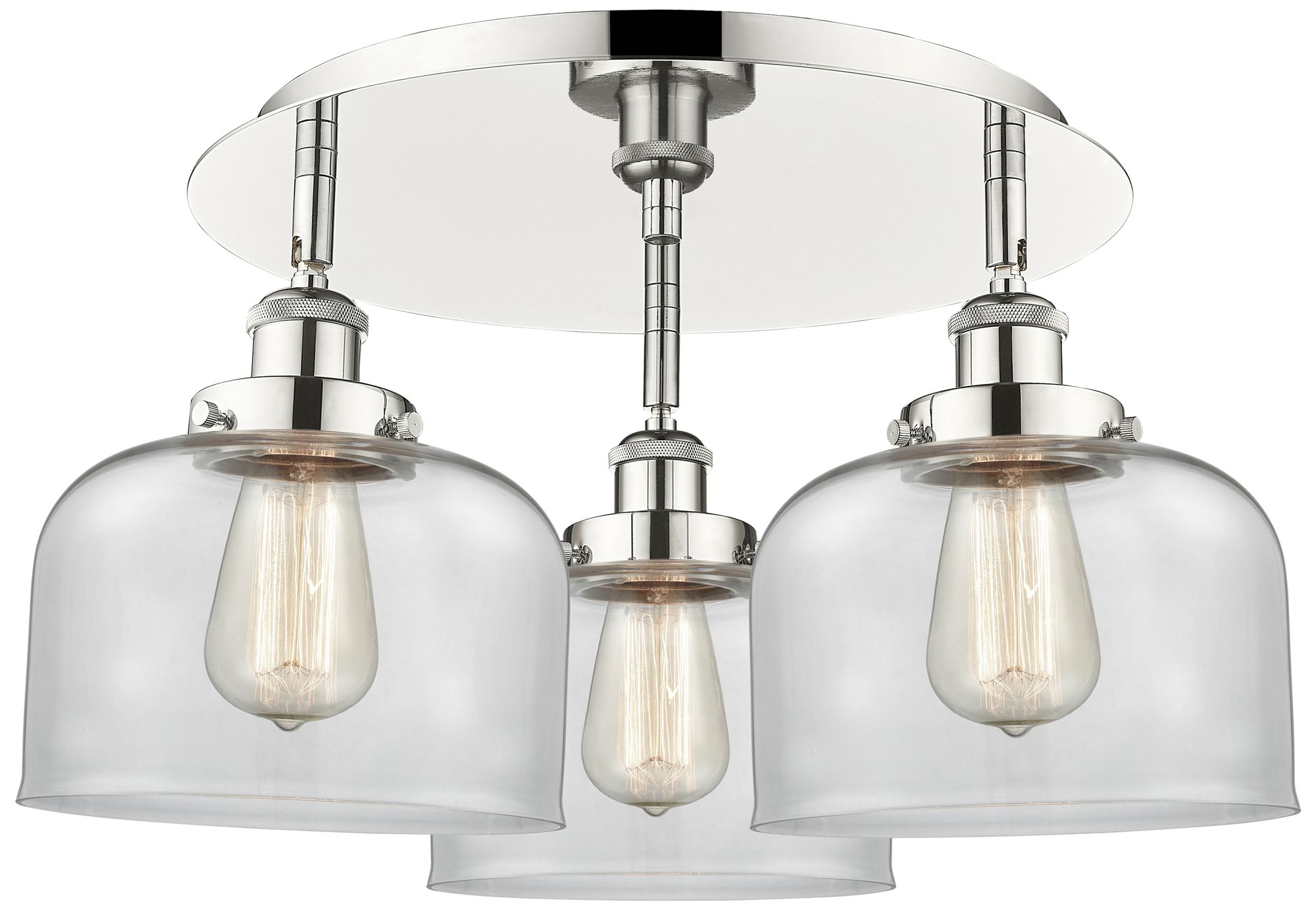 Bell 19.75" Wide 3 Light Polished Nickel Flush Mount With Clear Glass