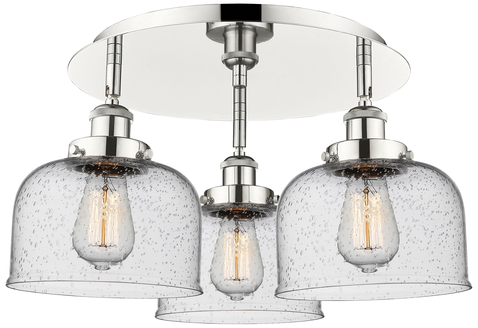 Bell 19.75" Wide 3 Light Polished Nickel Flush Mount With Seedy Glass