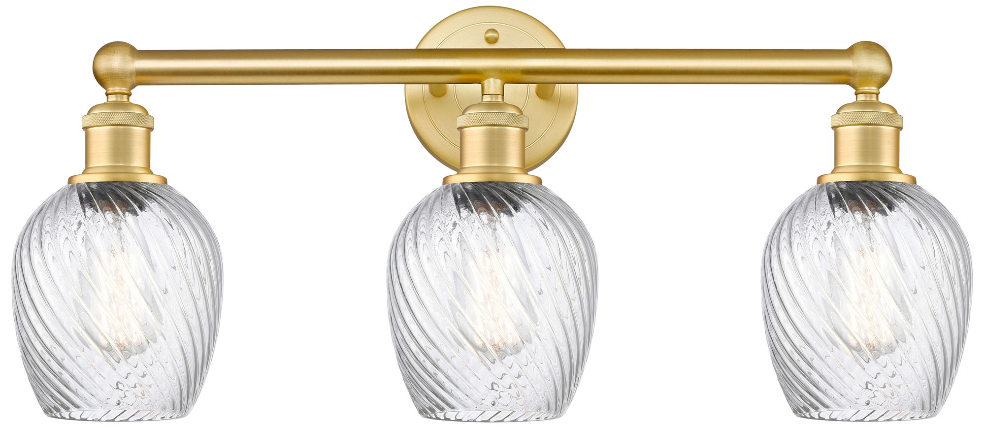 Salina 23"W 3 Light Satin Gold Bath Light With Clear Spiral Fluted Sha