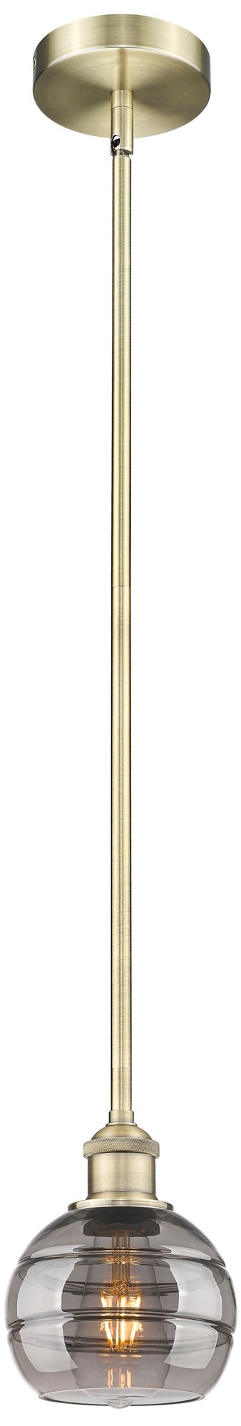 Edison Rochester 5.88"W Antique Brass Stemmed Mini Pendant w/ Smoke Sh