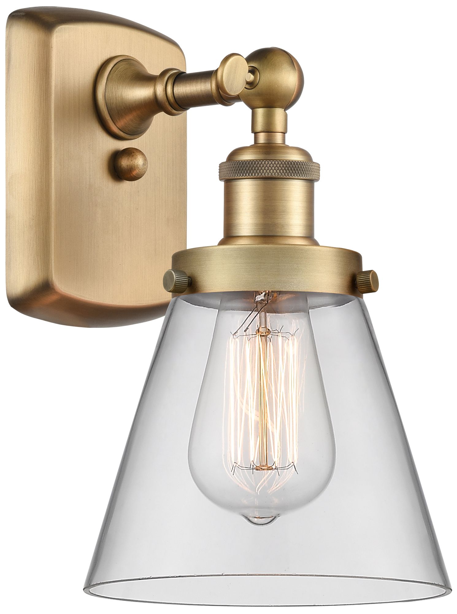 Ballston Urban Cone 11" High Brushed Brass Sconce w/ Clear Shade