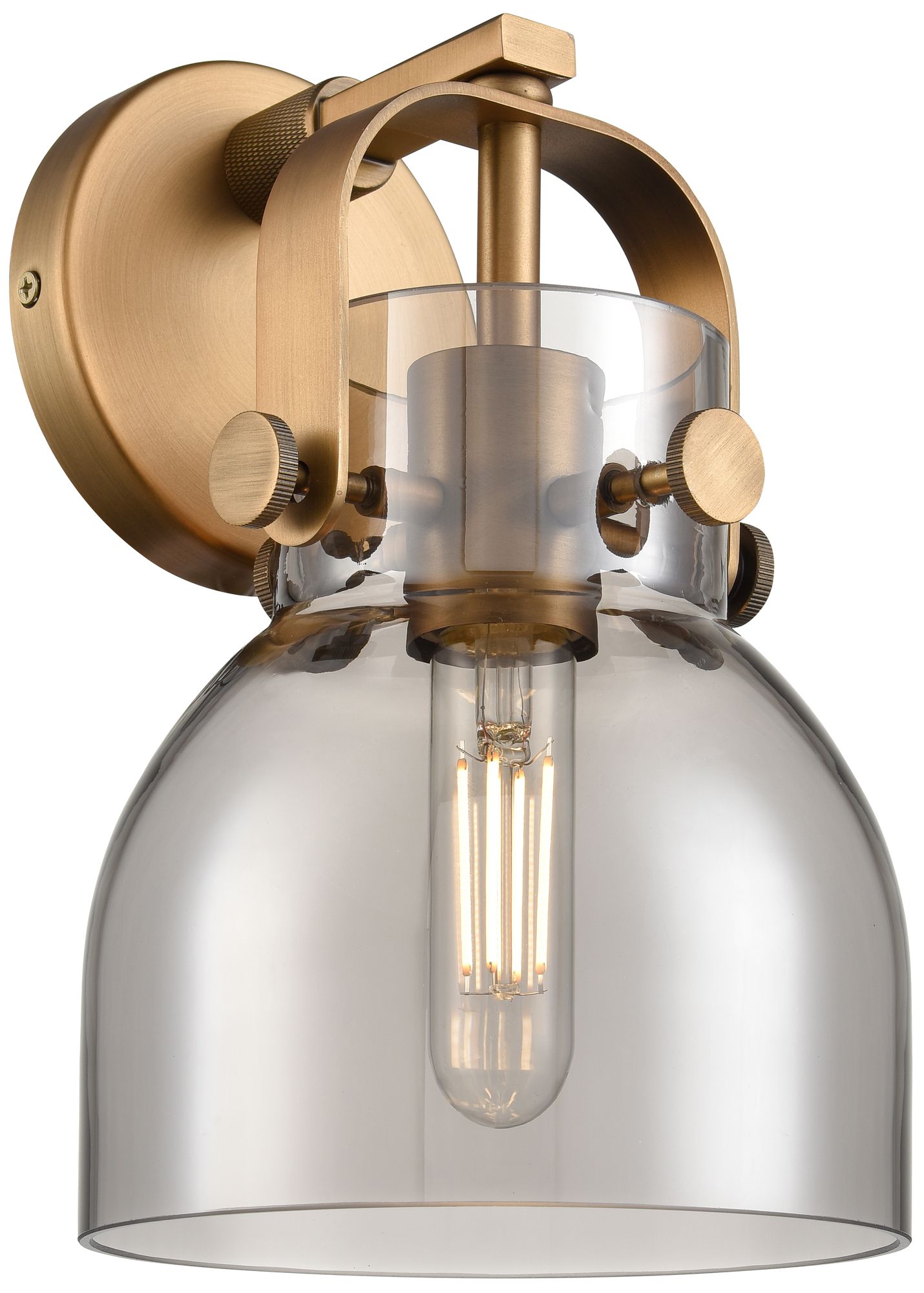 Pilaster II Bell 9.75" High Brushed Brass Sconce With Smoke Shade