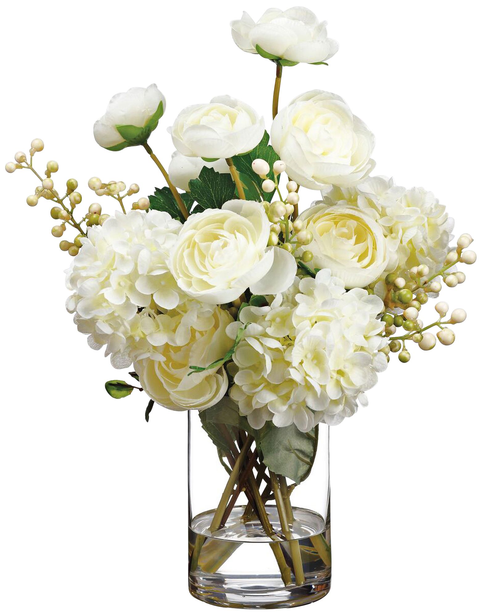Ranunculus, Hydrangeas and Berry 15"H Faux Flowers in Vase