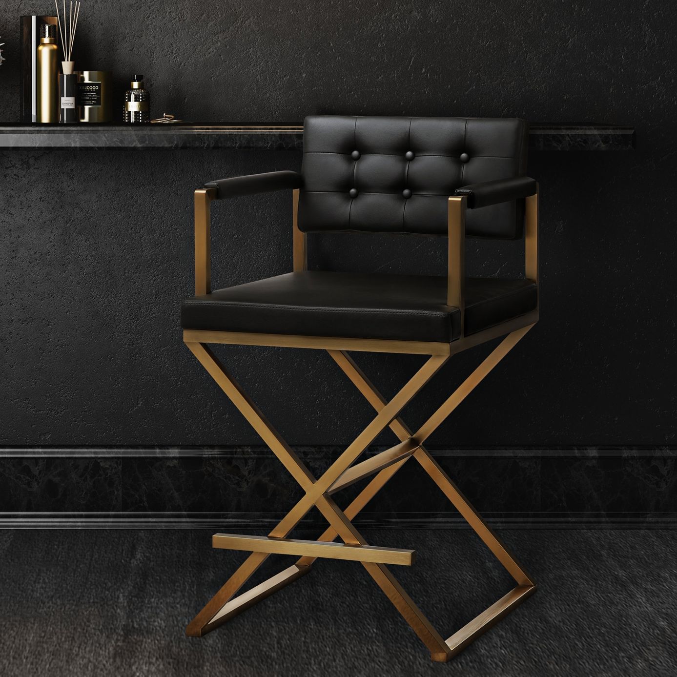 TOV Director 30" Modern Black Vegan Leather Chair Bar Stool
