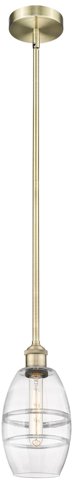 Edison Vaz 5.88" Wide Antique Brass Stem Hung Mini Pendant With Clear