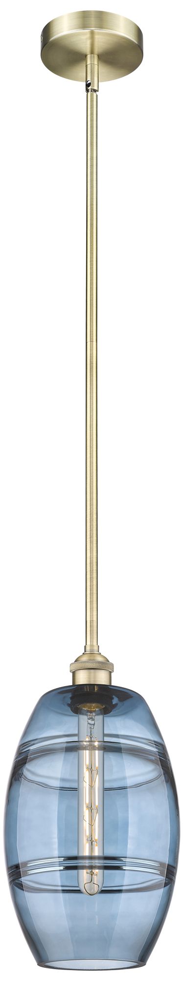 Edison Vaz 8"W Antique Brass Stemmed Mini Pendant w/ Princess Blue Sha
