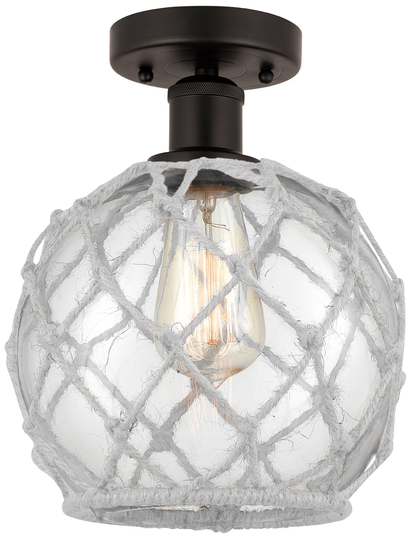 Edison Farmhouse 8" Bronze Semi Flush w/ Clear & White Rope Shade