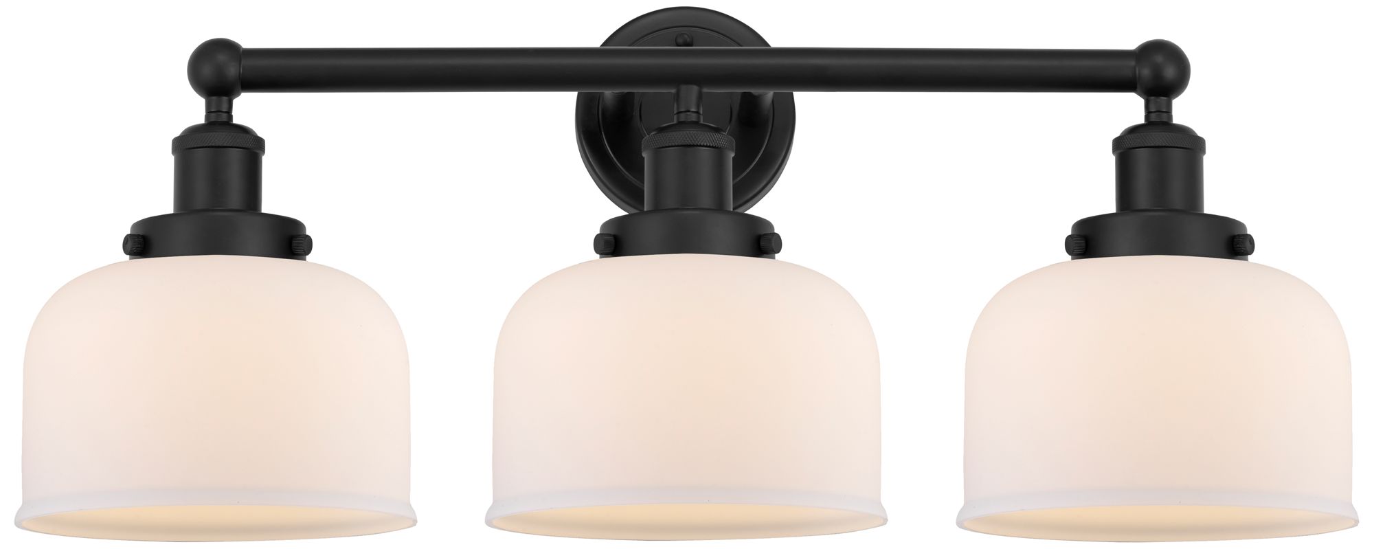 Edison Large Bell 25" 3-Light Matte Black Bath Light w/ Matte White Sh