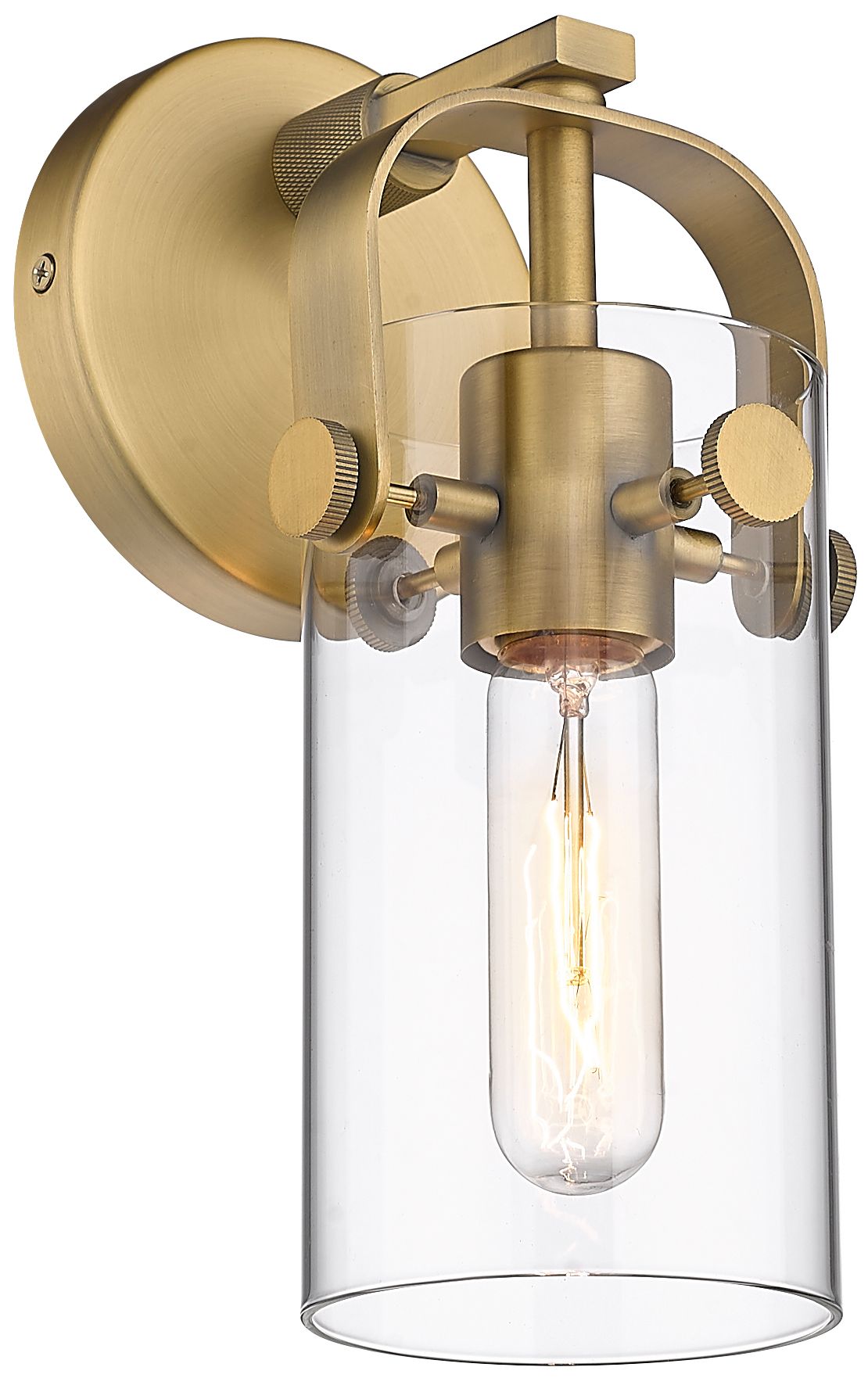Pilaster II Cylinder 10.5" High Brushed Brass Sconce With Clear Shade
