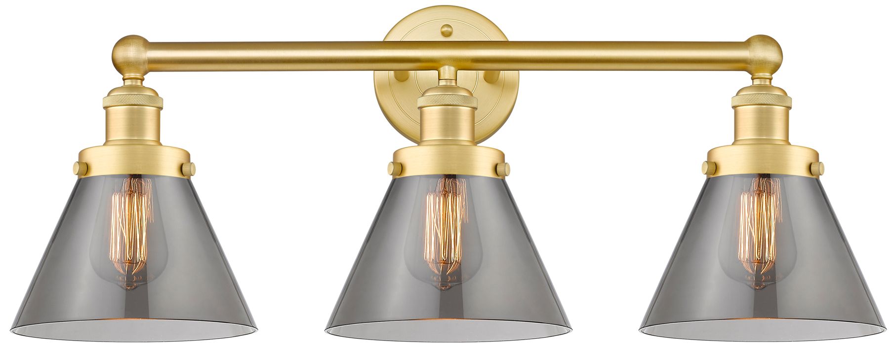 Edison Cone 24.5"W 3 Light Satin Gold Bath Light With Plated Smoke Sha