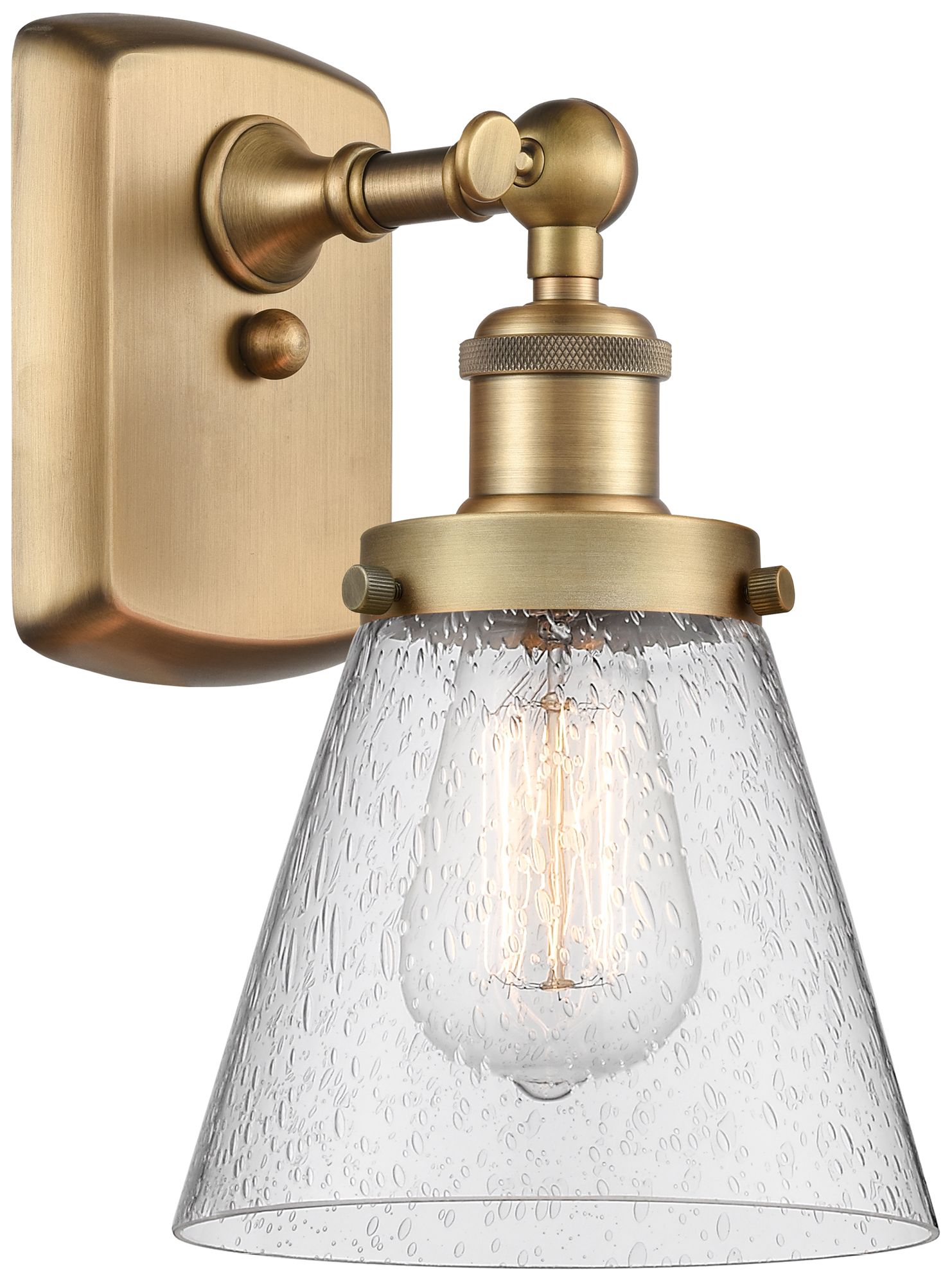 Ballston Urban Cone 11" High Brushed Brass Sconce w/ Seedy Shade