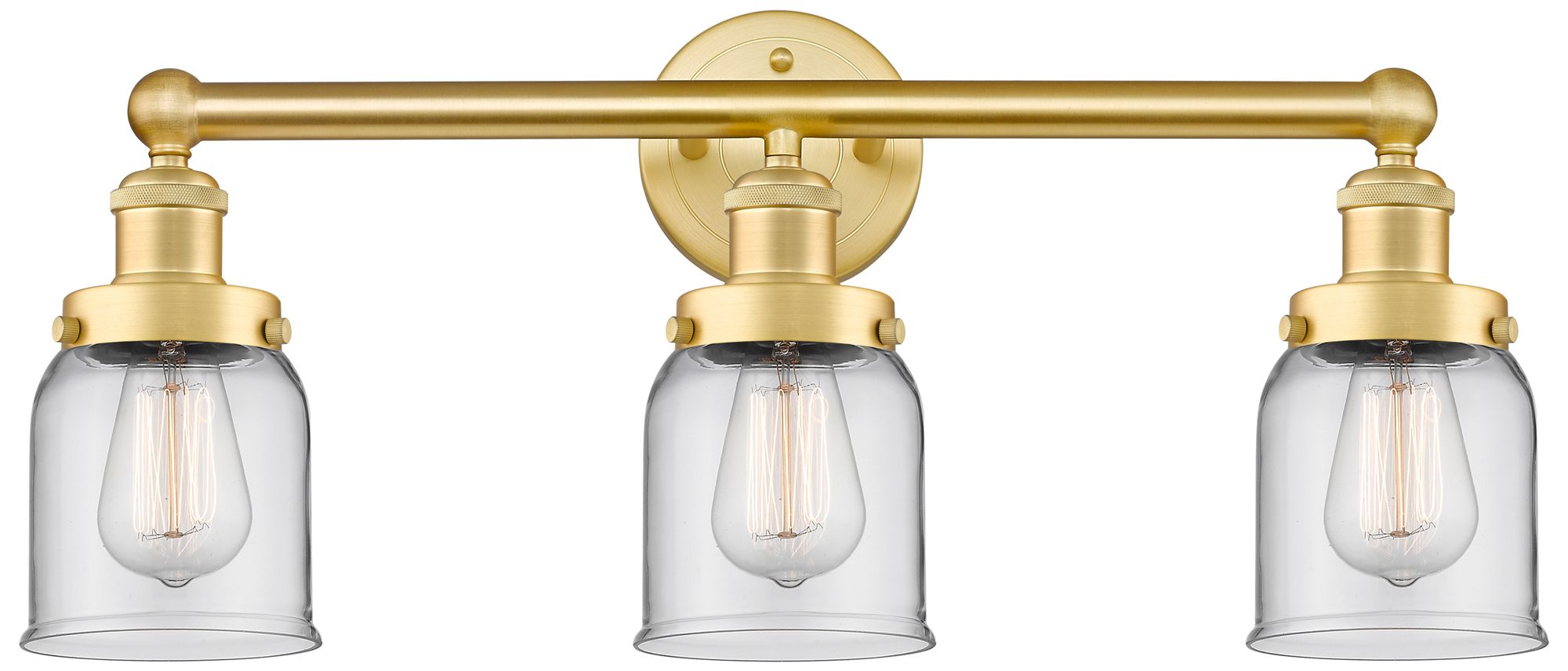 Edison Small Bell 24.5"W 3 Light Satin Gold Bath Light With Clear Shad