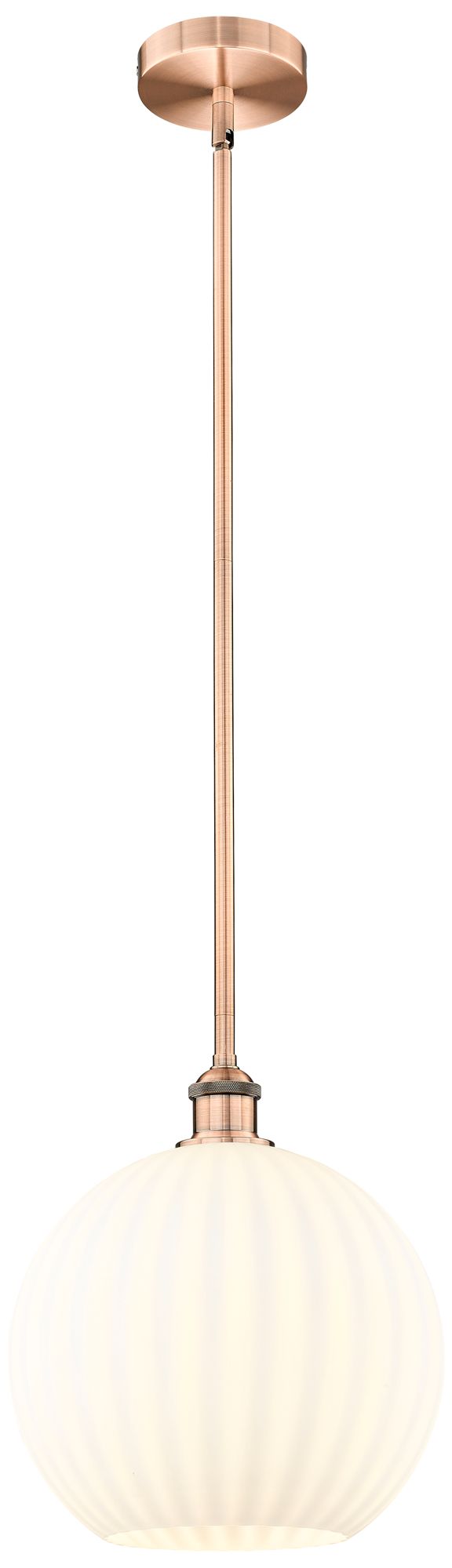 Edison 12" Wide Antique Copper Stem Hung Pendant With White Venetian S