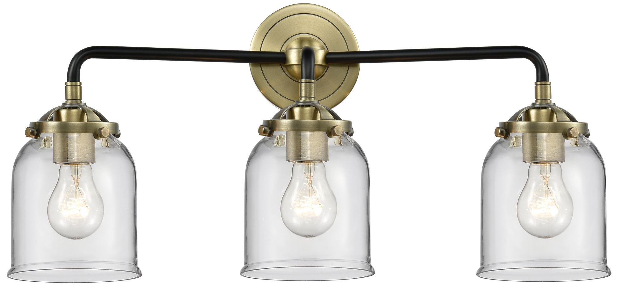 Nouveau Bell 23" Wide 3 Light Black Brass Bath Vanity Light w/ Clear S