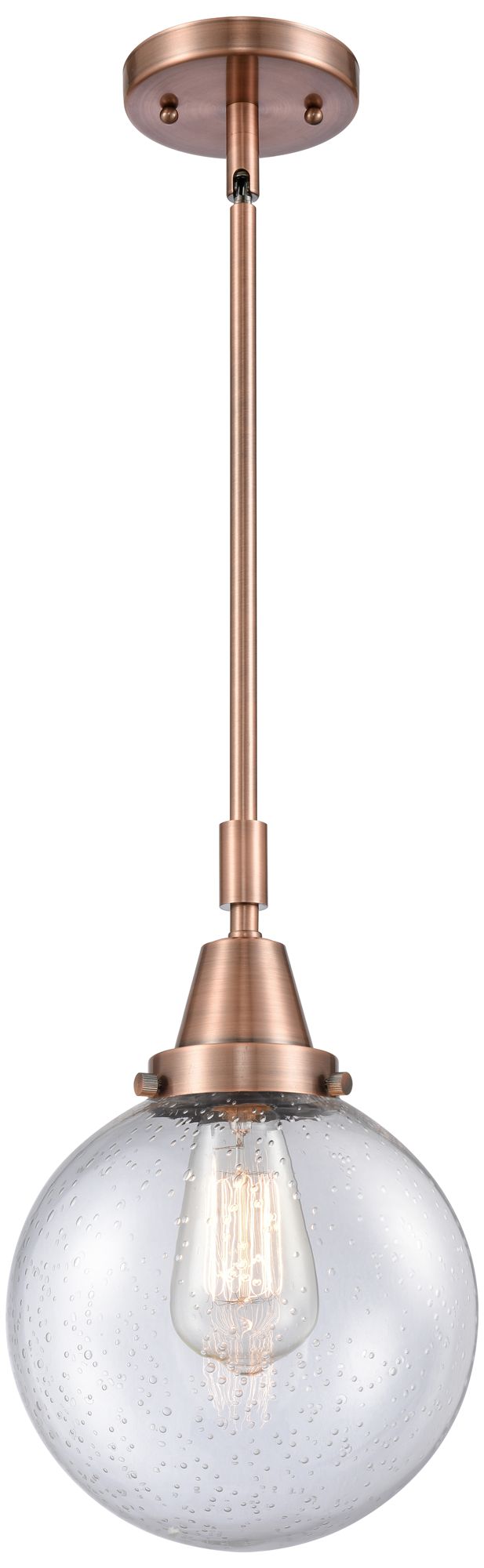Caden Beacon 8" Wide Copper Stem Hung Mini Pendant w/ Seedy Shade