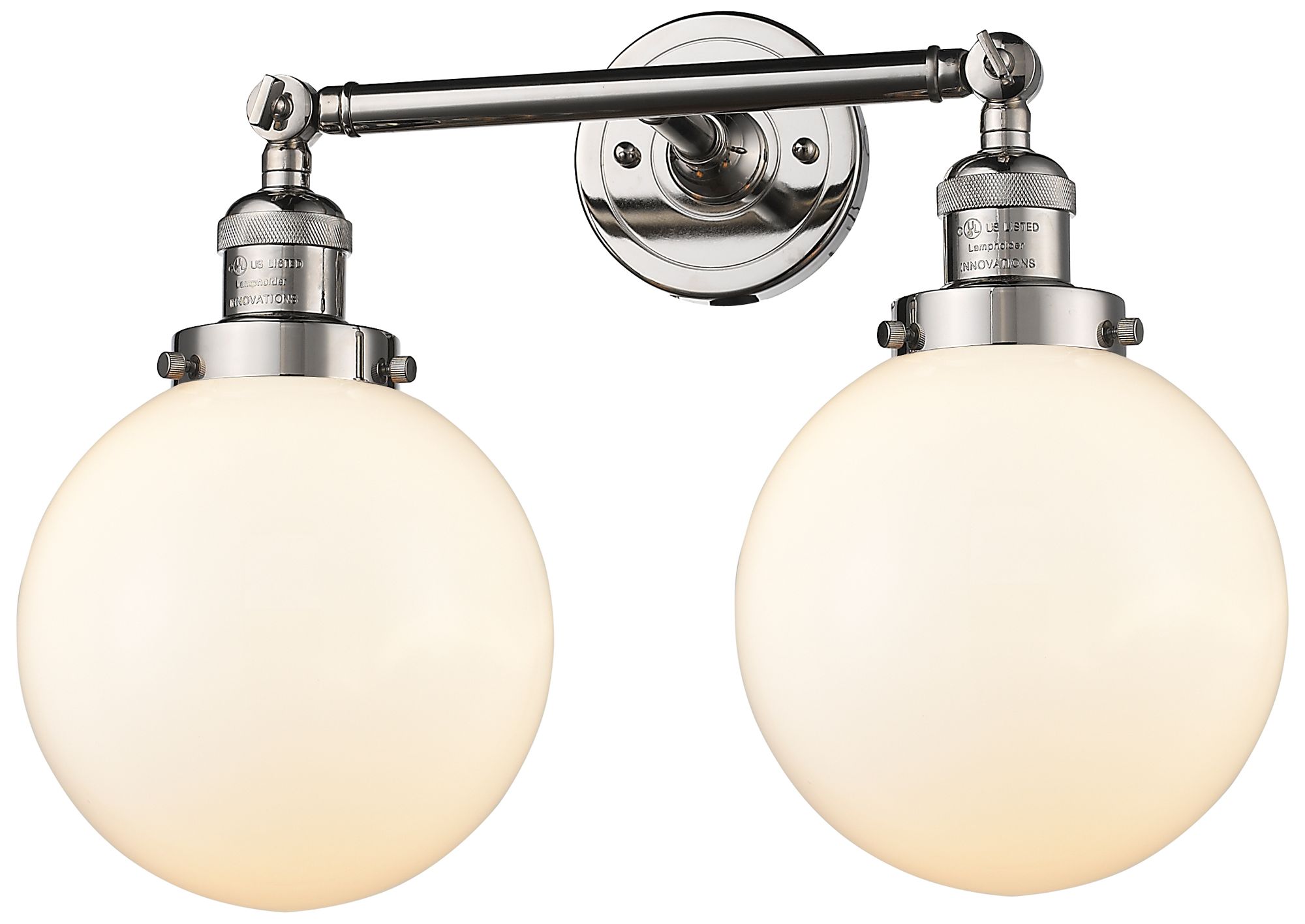 Beacon 19" 2-Light Polished Nickel Bath Light w/ Matte White Shade