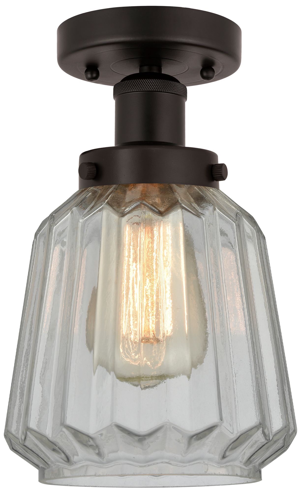 Edison Chatham 7" Oil Rubbed Bronze Semi Flush Mount w/ Matte White Sh