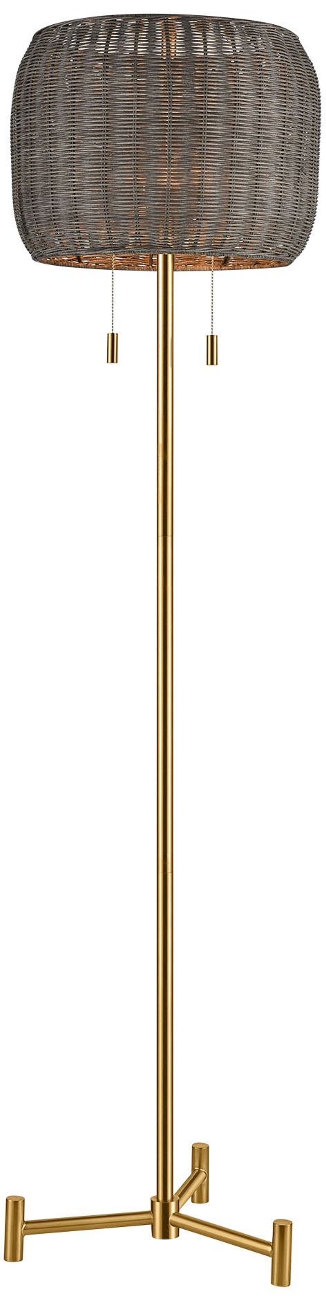 Dimond Bittar 61 1/2" Modern Aged Brass and Rattan Floor Lamp