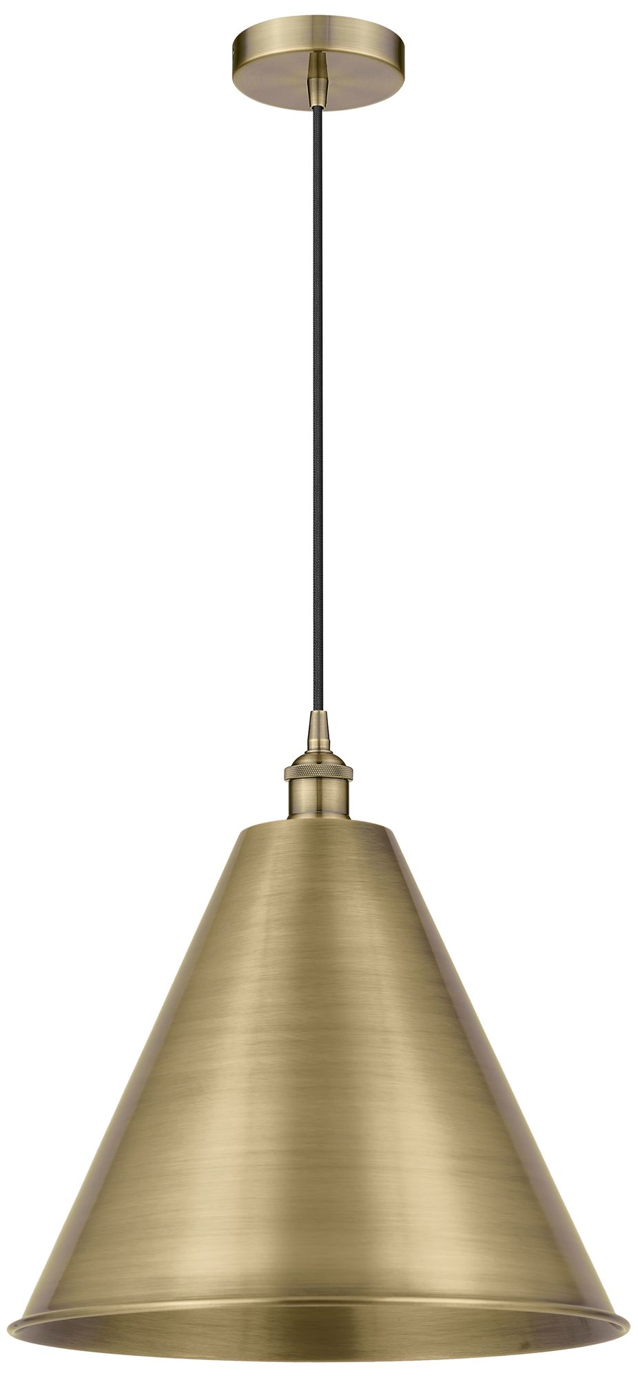 Edison Cone 16"W Antique Brass Corded Mini Pendant w/ Antique Brass Sh