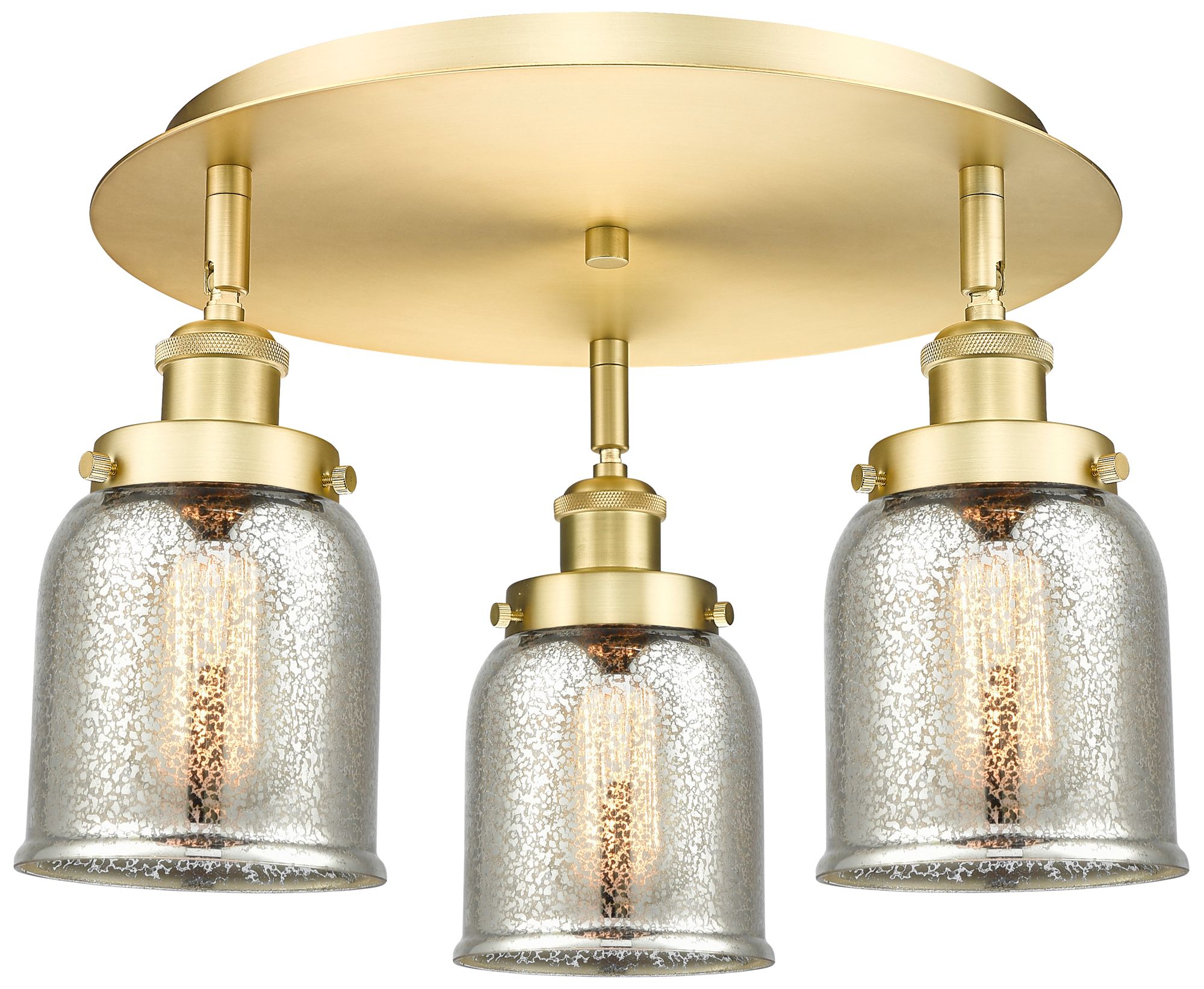 Bell 16.75"W 3 Light Satin Gold Flush Mount w/ Mercury Glass Shade