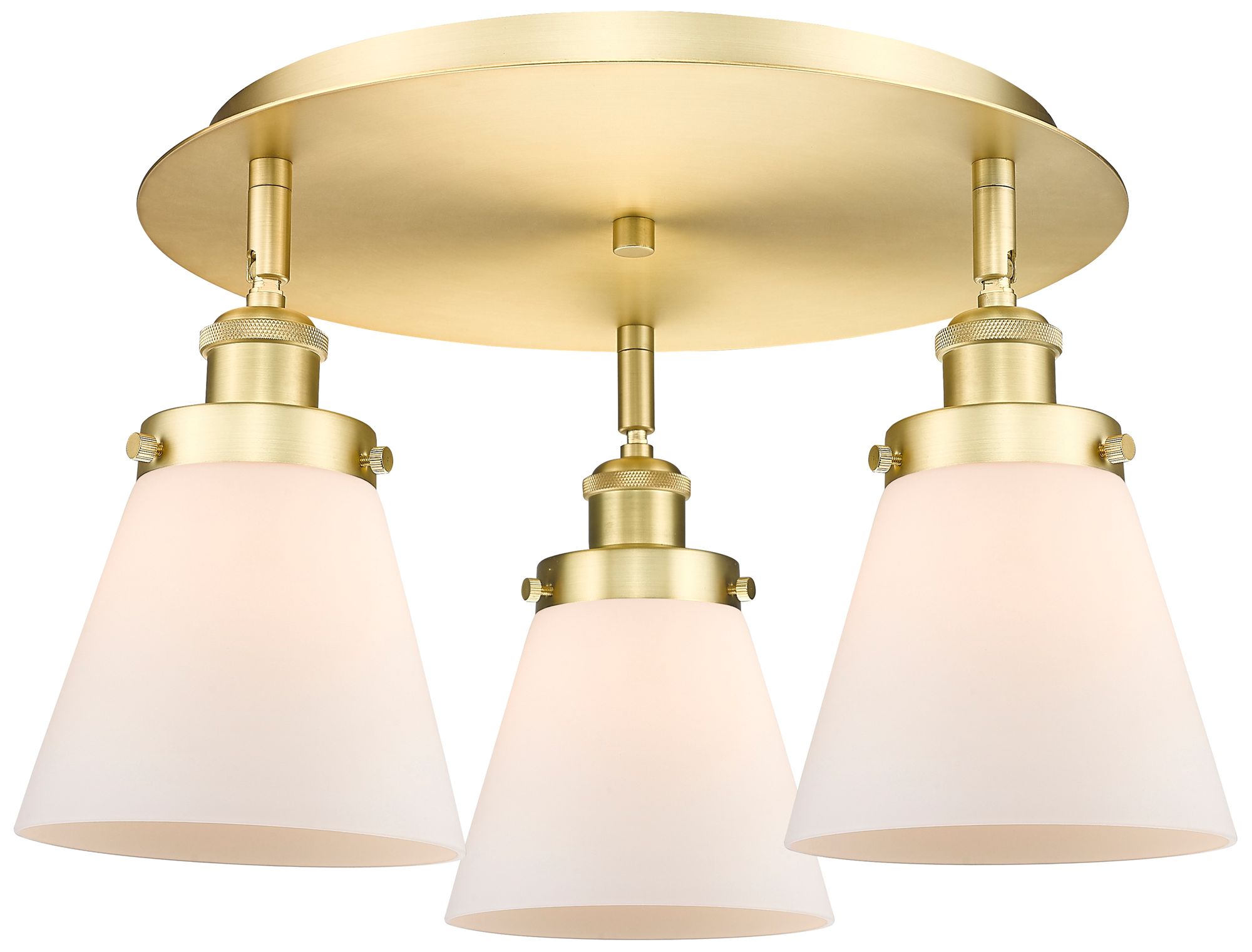 Cone 18" Wide 3 Light Satin Gold Flush Mount With Matte White Glass Sh